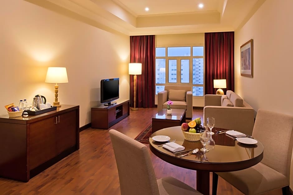 The suite is 80 m2 in size with one king sized bed. It features a flat screen TV, living area, coffee and tea making amenities, seating area, mini-bar, and work desk.